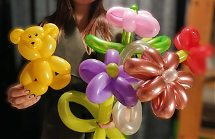 Megmutatjuk és együtt begyakoroljuk a modellező lufi helyes felfújását, a csomózási technikákat, a legfontosabb csavarásokat, az arányok fontosságát.
